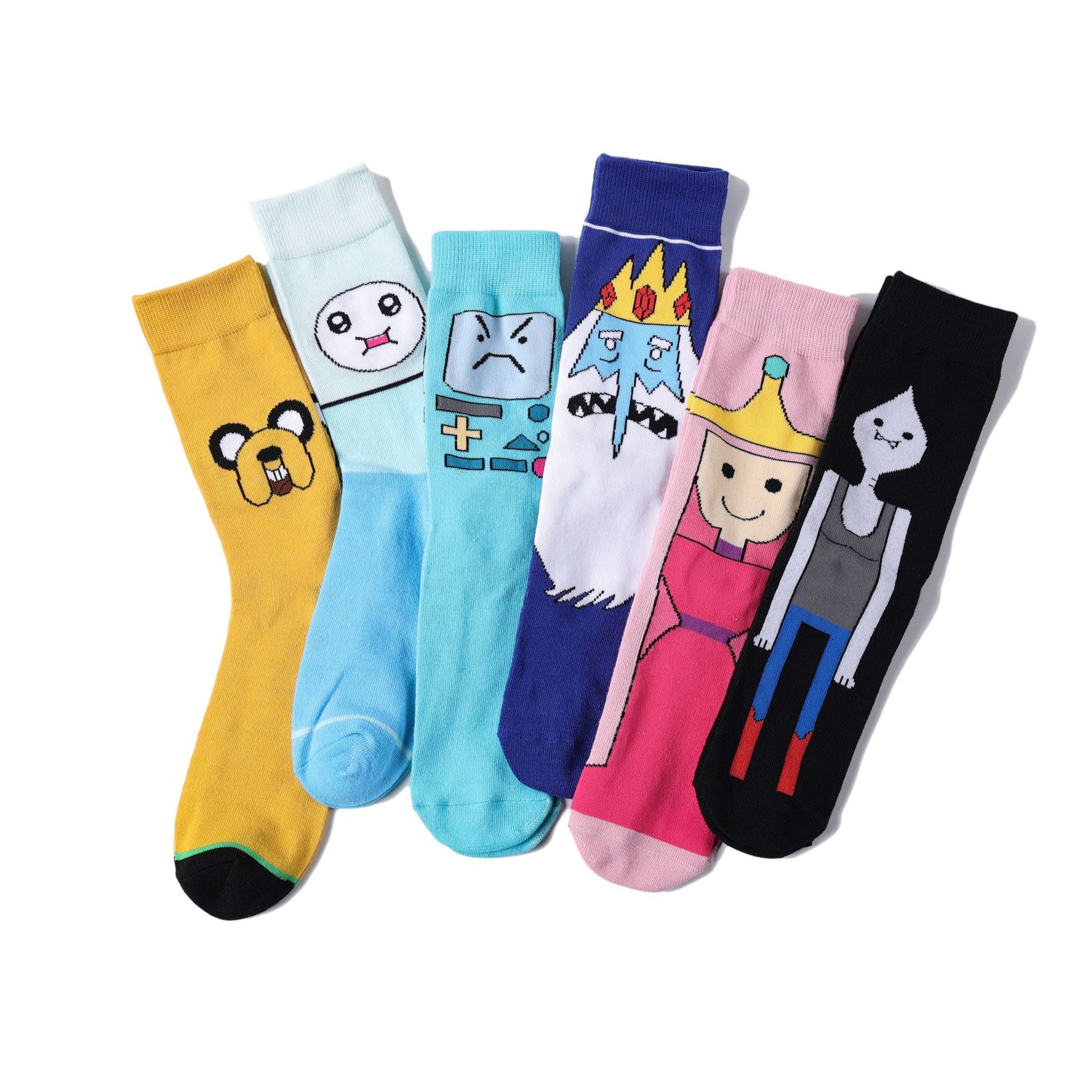 These socks are pure nostalgia for every Adventure Time fan. Each pair features one of your favorite characters! Perfect match for those who are planning to purchase our Adventure Time Slippers ❤️ Sock Length: 15 Inch